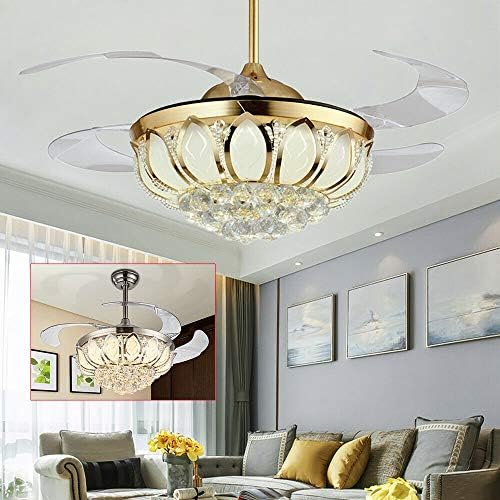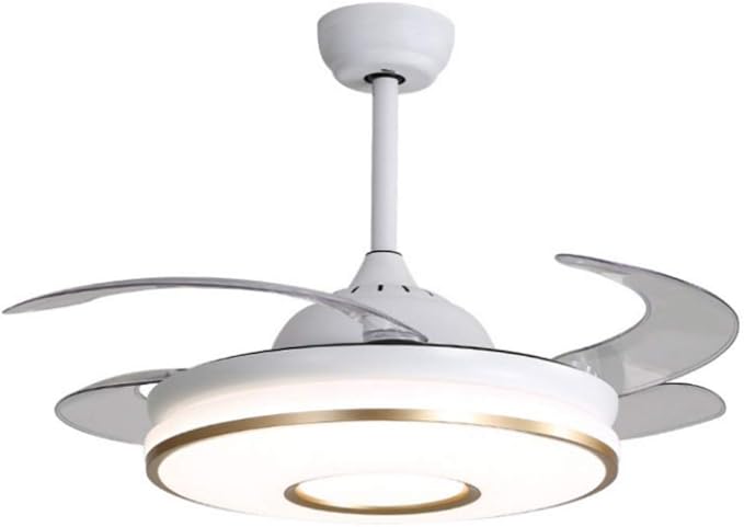 42 inch modern music ceiling fan light with bluetooth speaker, remote control 3 color changes acrylic retractable chandelier fans lighting fixtures with silent motor for living/dining room bedroom.