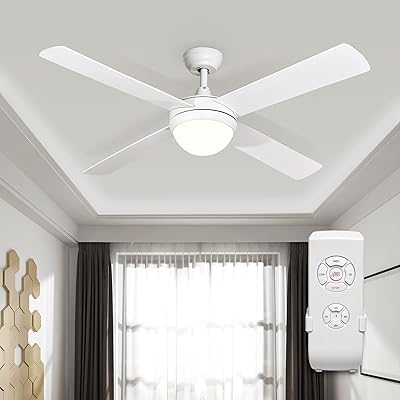 White finish blades are paired with a matching motor and an integrated etched lens, led light.